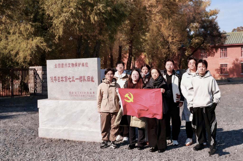 侵华日军第七三一部队罪证陈列馆作为世界反法西斯战争的重要历史见证,是承载民族记忆、警示后人的重要爱国主义教育基地。八十载岁月流逝,历史并未远去。初冬的七三一部队遗址,在苍茫天空下更显肃穆悲怆。师生们怀着沉重的心情,跟随讲解员步入这片承载着民族血泪的记忆之地。在罪证陈列馆内,大量无可辩驳的图片、文献、实物和影像资料,系统而全面地揭露了侵华日军进行细菌战、人体实验等反人类罪行;在旧址废墟前,断壁残垣无声地诉说着当年的残酷与黑暗。每一处遗迹都是一本沉重的历史教科书,每一次凝视都是一次直抵灵魂的拷问,让师生们深刻感受到了战争的法西斯本质与和平的来之不易。