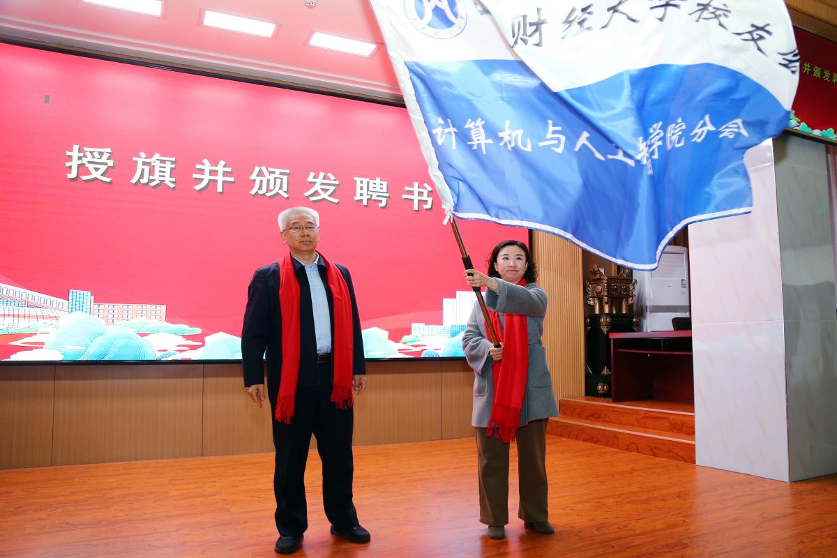张新为刘慧授会旗并颁发聘书;邵伟然为副会长、秘书长颁发聘书。