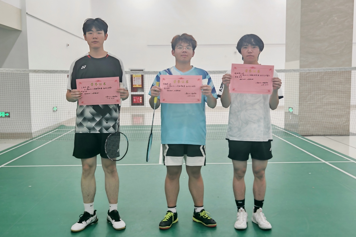 近百名羽毛球爱好者踊跃报名参赛,比赛伊始选手们便全力以赴,现场紧张激烈的氛围瞬间被点燃,掌声与喝彩声接连不断。进入四强后,选手们展现了更高的竞技水准,他们在赛场上跳跃、挥拍,扣杀、劈吊等精湛技术展现得淋漓尽致,洁白的羽毛球在空中急速往返,每一次多拍回合都扣人心弦。整个赛场不仅是对选手体力与技术的终极考验,更是意志与智慧的集中展现。经过激烈的角逐,计算机科学与技术2502班李朝祥、人工智能2501班胡业松、计算机科学与技术2504班王孜文分获冠、亚、季军。