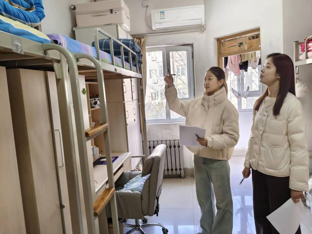 督查活动紧密围绕宿舍环境卫生、安全管理两项重点,在环境卫生方面,检查小组重点关注宿舍通风透气情况、物品规范摆放、床铺整理水平、地面窗台清洁程度等细节;在安全管理方面,则着重排查是否存在使用违规电器、乱拉乱接电线等安全隐患。检查过程中,辅导员老师与同学们亲切交流,了解大家在住宿、学习生活中遇到的实际问题,并予以及时解决或提出切实可行的建议。