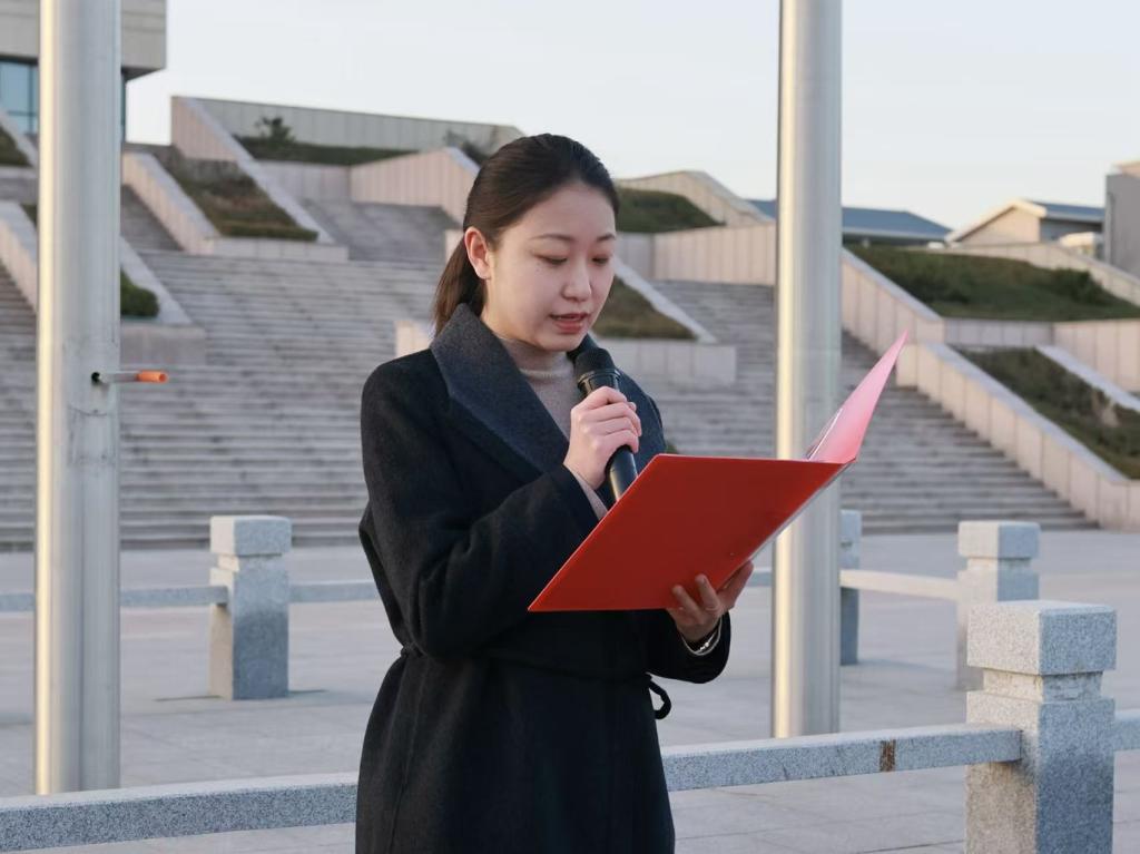 在章丘校区图书馆广场举行“国旗下点亮青春之光”主题教育升旗仪式。辅导员任楠,潘云默,郑雅馨,大奶做爱