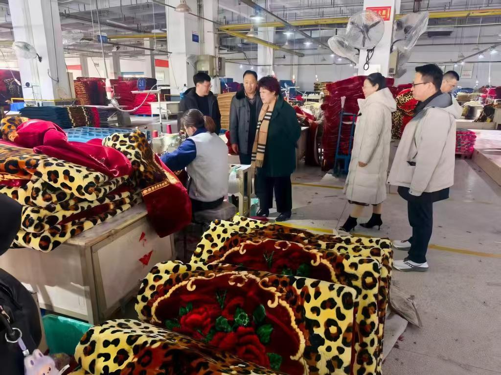 在位于临沂市罗庄区的新光集团毛毯生产厂区,杨春丽一行走进经编、剖布、印花、整理、包装等现代化生产车间,与负责人和工作人员亲切交流,对企业的产品优势、市场销售、人才需求等情况进行全面了解并有针对性地对我校相关专业进行重点推介。双方约定,将尽快建立起有效的信息沟通和合作交流机制,校企携手,共同促进企业发展和高校毕业生就业等工作。